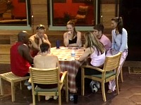 ![]() This site isn't about who should win, who will win, who I'd be friends with, or who is cute. It's about watching hamsters: which ones are doing what and why. Which are fun and which are dull. If they aren't entertaining, get rid of 'em! More to come, bookmark & come back! .. that dingo Linkage Daily feed recaps & opinion ratings navigation tool for this often-biased site HamsterWatch Big Brother 8 here we go again HamsterWatch Big Brother 7 Hamster all-stars in the house HamsterWatch Big Brother 6 time to do it all over again CBS Big Brother 5 the official site Housecalls live web show with Marcellas, also archived shows TV Updates feed updates, screencaps, and fun boards - easy to use and functional! bb5fan's 30 second refresh screencaps if you don't have feeds (great at work!) Hollyisms and Cowboyisms and Lisa-isms from me, that dingo person Sir LinksALot Big Brother 5 all the links Reality TV Links emphasis on individual hamsters' sites Aldav has all of the edgier stuff & the best mini-recaps in town (alternate url) Today's must-click special: Grin's BB5 Park: Day 46 from Jokers 8/16/04 - Day 46 >> to the future >> dwell in the past >> latest Monkey business as usual Veto won't be used. Ho hum.Drew slept much of the day, having been up much of the night attending to Diane's insecurity. I missed it.. but "insomniacs with a desire to see covers move" (© Amy's Bus Ticket) were rewarded with a treat. Let Ticket tell it: Around 3am Diane put on her glasses to stare down Drew while he slept, till he woke up.. then she wouldn't tell him why she was crying, then wanted reassurance that he would still want her outside of the house, then began the usual assault of Drew insults saying 'I put guys like you in-check, all of the time!' No wonder he's sleeping all day! She woke him up this afternoon, surprising him with a new bikini Diane: A doesn't really decide anything, she gets Nat to do her dirty work Drew: Right.. Diane: This is what's making me crazy right now.. I don't know who to trust.. Drew, I feel uneasy.. just by looking at them Drew: Let's do a replay of last night when you were crying.. Diane: Shut up! You didn't even come checking on me!! (they laugh) Diane: Let's pick up where we left off.. (she lays back and waits.. then they talk about the game some more) ![]() Drew gets up and puts on the boxing gloves, and then they kiss ![]() ![]() Will asks Diane what would she do if he just pulled this string.. oops! Drew checks out the peanut butter brownies that Karen made ![]() He looks in the storage room and wishes he could eat real food Diane follows him in there.. they kiss, and she plays "Lock You In" ![]() They continue being physical without being intimate Diane tried this on Drew but he said "my penis is in the way".. meanwhile the cameras zoom in on Nik's cleavage ![]() Nik says to the camera "Did you know Drew is uncircumcized?" Drew asks if her nipples are pierced, and she explains all about them ![]() They wonder about pierced nipples and lactation.. Nik says "Have you ever looked at a chick's nipples up close? It's like a Ritz cracker with all these little pokey things.. that's where the milk comes out" Outside, nominees and nominators (and Drew) enjoy a friendly poker game.. friendly enough for Cowboy and Diane to join ![]() The pressure may be getting to Natalie, or maybe she's always been a nailbiter ![]() ![]() ![]() ![]() ![]() Nearby Karen ran and ran and ran for miles on the treadmill ![]() ![]() ![]() ![]() ![]() Afterward she heated things up in the hot tub with a graphic sexual discussion with Marvin (hot stuff!) ![]() Karen being photogenic, and other odds & ends ![]() Remember that helicopter last night? I dreamt one was flying over the backyard, and another came along - a bad helicopter - but the good one chased it off. It dropped a little balloon parachute with a message on it about the next competition. I tried to grab it (cuz we're not supposed to have floating objects out here) but Big Brother shot it. There was glass flying everywhere but we got to read about the competition. .... HJ Update: Diane told Nik and Will about the handjob of the other night (previously disputed by some).. she used painting terminology which made it sound even weirder than it was at the time - but there's no disputing that's what she was talking about. (Apparently my pics of the non-event are an internet exclusive, wheee!) Later this, which was kinda sad, considering: Drew: I wonder what Lori's doing now Nik: Probably having sex Drew: I remember sex.. those were the days (Diane looked disappointed) .... Another feed switch slipup: DR: Hey Adria, so sorry to bother you while you're in the hot tub, but I have a deadline to meet Adria: No problem.. whatever you guys need, I'm here for you DR: Ok. This is gonna be one of the funky little sessions, about moments that happened days & days ago.. I want you to talk about things as if they just happened, as if they just went down Adria: No problem DR: Ok, go back to the day of the nomination ceremony.. the nominations have just taken place.. FISHIES |