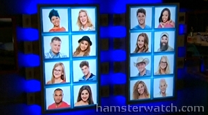 >> previous Hamsterwatch episode >> next episode >> bb16 directory >> permalink this page: http://www.hamsterwatch.com/bb16/70114.shtml ALL AMAZON.COM PURCHASES MADE THROUGH THESE LINKS HELP SUPPORT THIS SITE Amazon USA Last looks & first looks (Wednesday 7/2) The new photo wall is really snazzy looking, but especially at night I think.. this is the last time all 16 of them will be in color, so soak it up before Joey goes black & white - kind of ironic since she's got the most colorful appearanceThe day before eviction is usually a busy one for the nominees, but not with this crew.. Paola didn't campaign because Devin told her it would make Joey go crazy if she found out, and apparently Paola believed that.. Joey did a quick round of high-speed campaigning as they were being locked down for comp building.. she added a bit of unintentional comedy as she made a stop at the photo wall between stops, as if she was checking off a to-do list and/or she forgot who all's in there Speaking of comp apparatus, there are some giant cubes with dice-spot holes sitting around the habitat.. it's a fair bet these will factor into an upcoming competition, whether HOH or BOB or veto or even Have-not, if they're doing one of those.. there are also four big cable & pulley arrangements so BOB might involve flyingBack inside the walls, bikini hour was followed by fart and cuddle hour, plus a peculiar Zach & Victoria convo in which they each said they knew the other hated them - they each denied it of course.. this was all said with what seemed like a flirty tone to me but that changed later, at least on Zach's end, when he told first Frankie and then us how much he hates Victoria, her high school, her neighborhood, and that he hates her with a passion and he's going to ruin her life - Flashback 7/2 8.24pm.. I don't know if this is all an act or what What? Then things spiraled out of control: after a couple days of slow burn, Caleb finally scheduled another appointment with Amber, so Frankie, Jocasta, and Paola herded her off into the toilet to prepare.. right around the VERY SAME TIME, Devin announced he was calling a house meeting! Coincidence? You be the judge: Devin's the one who's been stirring Caleb's pot all weekSo Amber sat down with Caleb in the honeycomb to discuss the only thing he ever discusses - Flashback 7/2 10.56pm (go quads to see Frankie & Jocasta busting up about it), and Devin woke up Donny to tell him that he (Devin) was the one who urged his nomination, and that he's sorry and he has a daughter The rest of them then assembled in the living room (with popcorn, and Paola brought the Vaseline) except Caleb & Amber who were still going at it.. Devin got up and made a teary speech about what he'd told Donny, revolutionizing Big Brother, he has a daughter, people who can't differentiate reality and not, his integrity, and he has a daughter - Flashback 7/2 11.18pmBy this time, Caleb & Amber had buried their respective hatchets (going by appearances anyway), and were laughing and smiling like they were finally on their first date.. Devin retreated to the HOH toilet to cry for a long time, and the rest of them exchanged giggles and astonishment over what had just happened Frankie was called to Diary and came out beaming, as if he'd just been told he's on Team America (fuck yeah) or something.. the Have-nots finally ate food at midnight, eating with gusto and relish, like they do.. Amber had promised to cook a feast for them the other day but she didn't get away from Caleb in time.. when she finally escape, she gave him the mandatory hug this time and said "I love you" and of course he said "love you too" The night and the retells eventually wound down and they scampered off to their beds, but not before Caleb started up his new and improved loops about hoping (expecting?) to date Amber after the show and how good the hug felt and so on and so on.. he told one round of this while sitting on the HOH pot, to Frankie.. that went on for the longest time and the feedmasters made sure we knew where he was talking from - I only post the cap here because you wouldn't believe me otherwisePS Like so many other hamster plans, their prom that had been scheduled for tonight didn't happen - even before all the drama, nobody was talking about it.. typical Confused? Click the "previous Hamsterwatch episode" link up top for what came before, and/or get all the juicy details plus loads of caps & Flashback times in the Updates section where @UgotBronx has been updating her brains out.. but you really should get the feeds Farm report (Tuesday 7/1) Overnighters Cody & Brittany had a very lengthy chat early Tuesday morning, with a very interesting segment.. Brittany said "I think Frankie & Zach are gonna have a showmance" and Cody, after making her swear she wouldn't repeat it, told her about something that happened on Day 2 when they did the bikini photoshoot - most of them didn't know each other yetCody: [Zach] came up to me at the photo thing and he was like "bro, I'm gonna fuck Frankie" Brittany: Oh my god! Cody: I was like what?! Brittany: At the photo thing he walked up to Frankie and he was staring him up and down, and he's all "you're making my dick hard, you're turning me on" Cody: I hadn't spoke to Zach yet and we really hit it off and we started bullshitting.. and he's like "bro I wanna fuck Frankie so bad, he is turning me on so much".. I didn't know if maybe he just hadn't come out yet or maybe he was like bi or something.. then me and him talked about it a little and he said he's never had a gay friend So there's that, for whatever it's worth.. Zach & Frankie have been very close this week but Zach's also a self-admitted liar, so who knows what's going on there - Flashback 7/1 6.28am A new hamster and an old story They got the camera (surprising several of them) and Caleb wrote his tweets and blog, and he also took a few viewer video questions.. caps of the photo-taking and all the HOH communiqués are in t