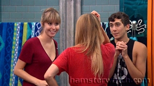 >> previous Hamsterwatch episode >> next episode >> BB17 directory >> permalink this page: http://www.hamsterwatch.com/bb17/72015.shtml ANY AMAZON.COM PURCHASE CAN BE MADE THROUGH THESE LINKS - NO EXTRA COST TO YOU Amazon USA GET THE FEEDS - NO PROMO CODE NEEDED - $5.99 PER MONTH Day 35 - Wednesday 7/22Thunder Road It was another quiet, mostly napping day at first, with Audrey only leaving her dental chair to change her battery or use the bathroom.. Austin continued his touchy-feely with Liz, and she continued to not return most of it, and not discourage it either.. Austin said he's worried about Becky and Jackie, and he laid out a plan in which he'll buddy up to Jason.. he also said he'll throw a hinky vote to keep Audrey tomorrow, and blame that on Steve - Flashback 7/22 12.32pm (this convo had major repercussions in the days that followed)Vilification of Audrey continued by Austin to Meg and others, and by Vanessa, Shelli, and Clay to each other and anyone who would listen, and by Jackie and Becky - it is the hamster way.. Vanessa also returned to sowing anti-James seeds to Shelli and Clay Audrey finally rose as the air show was getting underway.. she asked Jackie how everything had gone down on Sunday, and Jackie told her.. they parted with hugs and Jackie saying she's glad Audrey's okay, "good game" and etc.. then Jackie reported to Clay and Shelli, and they all scoffed, laughed, and said "oh gawd!" a lotAudrey pulled Shelli into the parlor where they rehashed and retold their lies and didn't settle anything of course.. Audrey said Shelli had betrayed her in a monumental way that would go down in BB history, which set Shelli off to yet more retell rounds Audrey also told Shelli that she had indeed seen the doc and was given Ativan.. she rose again a couple times and peeked out, disappeared again, and then she was up and at 'em in her greenlight, doing a sad/angry/loopy rendition of their musical song.. sure, it looked crazy but I took it as she had turned the corner and was on the rebound, especially when she finished with a big flourish and bow, and said "and scene"Later the others were gathered for loud chat in the living, and Audrey made a grand re-entrance with wig and blanket-robe, hollering "who's ready for a takeover?!" They rallied for a minute and asked how she was doing, and that was pretty much that - but it was nice to see after three days of the lethal isolation/ostracization combo Julia rotated back in so Austin was able to start getting around again.. Steve told him he wouldn't throw the vote, and Austin said he was worried that Clay might (when Austin plans to) - it was like a Who's On First routine.. Steve had a long talk with Julia.. she was perturbed about Audrey breaking Have-not rules but Steve explained it was production's decision and thus legal/not rule-breaking.. Steve suggested they come out openly as twins and Julia thought it was a good idea (with Steve's explanation) - she said she'd discuss it with Liz at the next swapThey did some loud bowling with weighted cereal boxes, and a lot of group chit-chat.. Austin started putting his Operation Jason plan into effect by admitting what a huge fellow superfan he is, and he gave up the twins' names and how smitten he is with Liz.. we didn't see Audrey again, but Vanessa and Shelli each made a few more rounds to ensure votes that are already there Operation Jason backfired spectacularly when Jason later told Meg, Shelli, and Vanessa the news about Austin being a superfan/feedster, the twins' names, the crush on Liz and the allegedly now ex-girlfriend, and especially that Austin would rather Julia go sooner than later so he can get more Liz time.. naturally Shelli told Clay.. Austin's game went boom in a matter of minutesGET YOUR FEEDS to follow all the action! One week free trial - no promo code needed Remember to click "previous Hamsterwatch episode" at the top of any page for what's come before, and hit the Feeds Updates tab for loads of details and screencaps Day 34 - Tuesday 7/21Marooned 2.0 We got a taste of what feeds could be like after Audrey's gone, since she remained asleep in the dental office virtually all day - convos elsewhere were mostly mundane.. through hearsay from them now and then, we learned Audrey was given a slop pass for "24 to 36 hours" due to whatever meds she's been given, and Becky delivered her an apple here, some crackers there, but she wasn't up and eating much anywaySteve expressed concern a couple times and said he didn't know whether to visit or leave her alone.. Vanessa did pay a visit but Audrey ignored her, setting Vanessa off on a few ranty rounds.. James and Jackie napped in their dental chairs for awhile but didn't chat with Audrey, who was sleeping on the floor at that point.. it wasn't fun/funny like the first time Audrey was "marooned" in bed: that was as much strategy and/or regrouping as anything, in my opinion.. this time it was just a sad thing to witness Otherwise there wasn't much, as I said.. they did their happy posing and duck-facing for the weekly picture-taking, and Shelli wrote another blog and tweets.. apparently Austin talked to Liz about his girlfriend at home, saying they had an open relationship - I didn't hear that one, but I heard some of the catty remarks about the situation from various othersShelli and Clay had a disturbing bedchat about how perfect and attractive her brother is, and how much he looks like Clay, and Vanessa joined them for some gametalk.. I haven't heard any of those three acknowledge Audrey's truths about them, and their denial and blaming Audrey rages on.. also, Shelli might be getting a little tired of Vanessa making plans for them, or she might just be feeling her HOHitis peaking.. Jason told some of the "outsiders" that they need to get the twins out before they're allowed to be two votes, and James had a penny-drop moment about that.. I think they decided to gun for Austin first Wackstreet signals continued to happen here and 