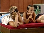 July 22 & 23, 2006 - Days 20 & 21>> BB7 Park by TD, Saturday - Sunday >> to the future >> to the past >> daily index >> latest HamsterWatch episode >> linkage >> James is Head of Household - Will & George are nominated << >> George won veto << A whole lot of nothing (Sunday) Marcellas looks how I feelIf I weren't somewhat committed to seeing this thing through, I'd have bailed by now.. this is one boring group of pompous, self-important eejits - the word "entertainment" does not apply Due to their lack of activity and my lack of interest, it's another doubled-up lite episode Will amuses himself a bit better than most but stops short before putting his best idea in action: throwing the two inside and two outside urns into the pool to play Treasure Hunt.. meanwhile Boogie sprays his hair while swimming, and Jase does something.. ![]() Janelle & Will have a friendly if tentative chat, where she asks if he really does want to leave early.. he says if he isn't evicted in three weeks "hell will be unleashed in this house" - watch the video - then he says "Let's do it, let's backdoor someone this week" and she responds "Okay, who?" For some reason (paranoia?) James joins the common folk downstairs for afternoon body count.. Howie comes through pestering & mooning, and they shoo him out - watch the video.. James heads back up later and stays planted with his guacamole thing and revolving door ![]() You can tell how much each visitor impresses, scares or bores James by his demeanor with them.. this is one of Erika's many visits - she shows up at every meeting, usually uninvited - but she's on her own this time.. take-out dinner #2 arrives and they pounce ![]() It's Italian this time.. most of them complain later that it was lousy, but they dive in with gusto at the time and can't get enough.. except George, of course ![]() In another amazing coincidence of timing (or not), just about the time the air show winds up across the country, they're all playing the game again and it's meeting season in the HOH again George is up first.. James manages to compliment & insult him simultaneously - watch the videos: part 1 - part 2 Next it's a grand audience with Willboogie.. Kaysar's there too but you'd never know it.. James suggests Jase to take George's place, and Willboogie argue for Marcellas - watch the videos: part 1 - part 2 - part 3 ![]() Flames and WAY TOO LOUD music cut off Will talking about putting pressure on the producers.. I didn't record the rest though it went on & on & on Meanwhile Jase & Marcellas get in each other's faces downstairs over what one or the other said in Diary, or something.. it ends as soon as it starts and they go to their respective corners.. later Diane chats with Jase a bit - watch the video ![]() Pretty soon everyone but Willboogie, Jase & George are in HOH, all talking about who to put up.. either James has no autonomy as HOH at all, or he's working hard to present that illusion.. of his own team, three want to put up Jase and he's not one of them - he even starts arguing why Marcellas is a good choice In short, most of them just keep talking and talking but not saying much other than what a great cast they are and how we all must be riveted to our screens (zzzz) Even if someone wanted to listen to them all pontificate all the time, it's pretty much impossible since the feeds cut to flames and WAY TOO LOUD music every few minutes because these nimrods keep singing, talking about their diaries, talking about people or things they're not supposed to, and bashing the producers.. Big Brother has absolutely no control over them so they run wild knowing that they can Why they don't start fining them for this crap is beyond me Against all odds, or not (Saturday) George won the vetoAlmost everybody saw that one coming.. except the people in the house Along with the veto necklace he's got no hair, blue limbs, is on slop diet for the duration, and he can't play veto next week As I understand it, the veto comp was a double-dog-dare kinda thing: Willboogie bailed instead of eating one bowl of slop.. Jase bailed rather than shave his head.. James bailed rather than give up the opportunity to play veto next week.. George beat out Kaysar for the tiebreaker by saying he'd eat slop for 60 days.. along the way some of them dove into a blueberry bath and some clothes were burned Jase commisserates with George about their blue, and tells him he was everyone's target.. George asks what most fans have been asking - watch the video.. Kaysar starts getting used to his new look and Marcellas assists ![]() George: I don't understand.. why would they keep the doctor? Around the compound it's the usual body count, with a lot of "how did that happen?" thrown in this time.. Janelle makes up some more of her world famous apple crisp ![]() Upstairs it's a very long and very tiresome meeting as the BB6ers discuss what to do (again).. James says he has to put up Boogie since he promised everyone else he wouldn't.. Howie & especially Janelle say they should get rid of Jase now while they can - watch the video.. Kaysar doesn't say much.. James complains (a lot) about how the comp wasn't fair - it goes on for hours ![]() James: I told [Jase] I wouldn't backdoor him Howie: It isn't backdooring if someone comes off with the veto .... James: Big Brother put in their Fuck James clause James: It's not fair! James: This has gone from being an easy week to just what they wanted James [about how far George went to win]: What do you expect? The guy sells himself out for a living James: We'll probably be a bellyfloop contest next James: I used to think this was a game show.. now we know it's for tv and the game is down at the bottom James will never be convinced now that it wasn't rigged, and perhaps it was.. but they'll never convince me that James of all people didn't have a plan in place in case the veto was used, or that not one of these 'all-stars' asks about that when they make their safe-from-nom deals with 